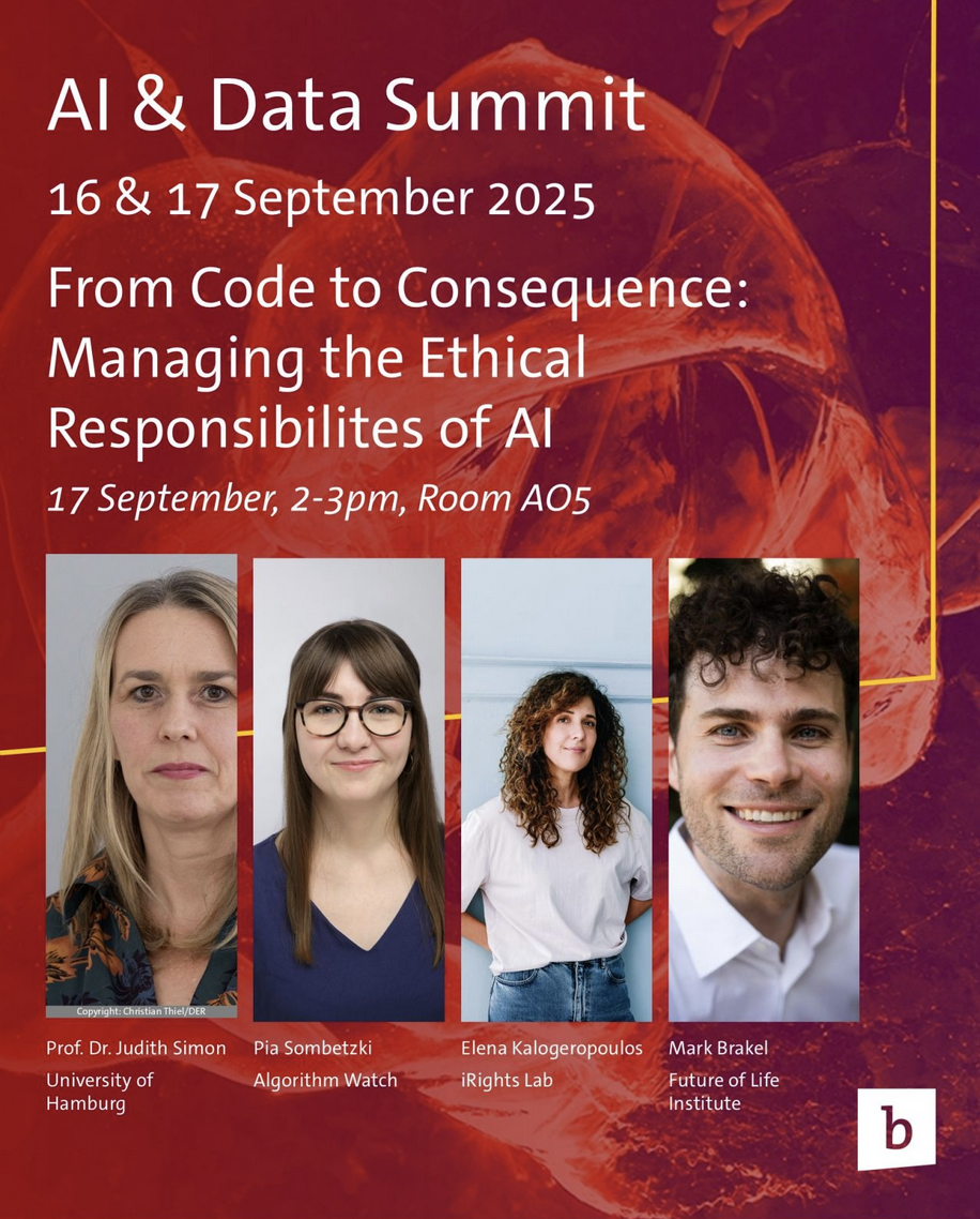 Beim diesjährigen AI & Data Summit (AIDAQ25) der Bitkom e. V. in Berlin durfte ich die Session „From Code to Consequence: Managing the Ethical Responsibilities of AI“ moderieren. Gemeinsam mit Prof. Dr. Judith Simon (Universität Hamburg), Pia Sombetzki (AlgorithmWatch) und Mark Brakel (Future of Life Institute) haben wir eine der drängendsten Fragen diskutiert: Wer trägt Verantwortung, wenn KI reale Auswirkungen hat – und was bedeutet das konkret? In einer lebendigen Debatte wurden unterschiedliche Perspektiven deutlich: von der Verantwortung einzelner Entwickler*innen und Unternehmen bis hin zu politischen und regulatorischen Rahmenbedingungen. Klar wurde auch, dass Verantwortung nicht beim Code beginnt, sondern entlang der gesamten Entscheidungs- und Entwicklungskette zentral ist. Ein herzliches Dankeschön an alle Panelist*innen und Teilnehmenden für die offenen Beiträge und die intensive Diskussion.
